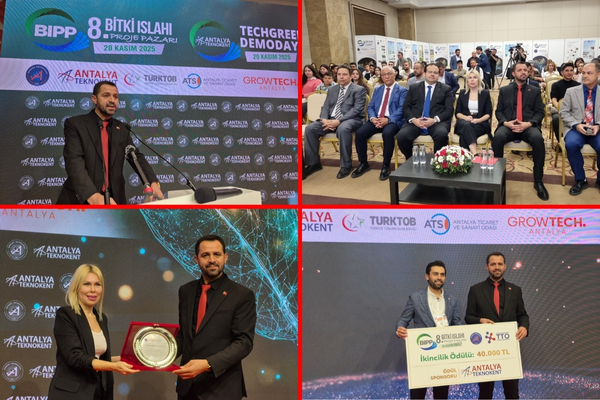 Yarışmanın jüri üyeliğini de üstlenen TÜRKTOB Başkan Yardımcısı Kasım Kılıç, proje sahiplerinden bilgi aldı. Yarışmanın sonunda dereceye gidenlere ödülleri verildi ve Antalya Teknokent Genel Müdürü Dr. İbrahim Yavuz tarafında Kılıç’a teşekkür plaketi sunuldu