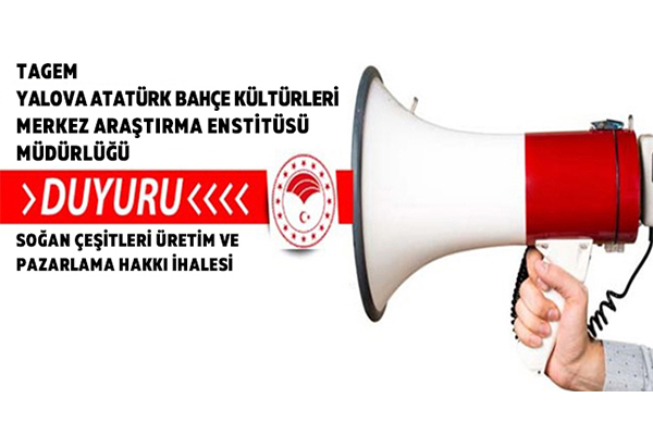 Tarımsal Arastırmalar ve Politikalar Genel Müdürlüğü (TAGEM) Yalova Atatürk Bahçe Kültürleri Merkez Arastırma Enstitüsü Müdürlüğü, soğan çeşitleri üretim ve pazarlama hakkı ihalesi ilanına çıktı.